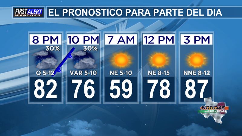 ESTE DE TEXAS(NOTICIAS DEL ESTE DE TEXAS) - Temperaturas muy cálidas esta tarde/primeras horas de la noche, luego un frente frío débil debería moverse solo refrescándonos unos pocos grados para mañana.