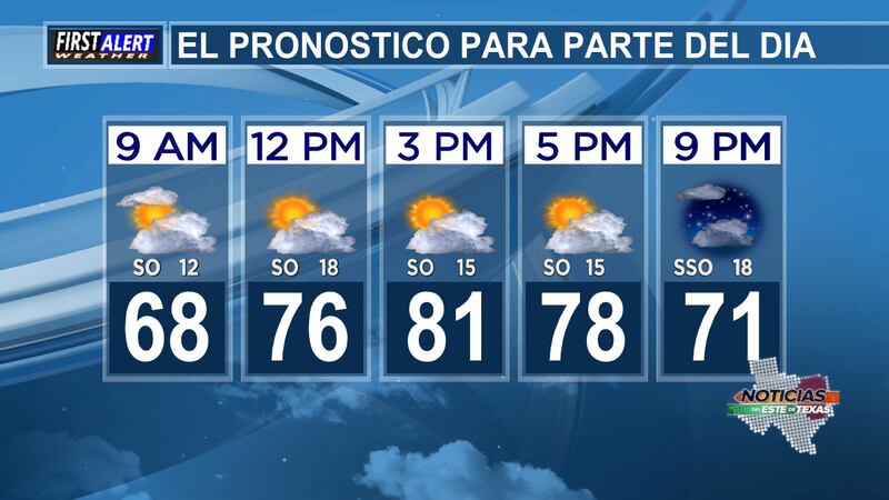 ESTE DE TEXAS (NOTICIAS DEL ESTE DE TEXAS) - ¡Buenos días, East Texas! Es un comienzo leve con temperaturas en los 60 y los vientos del suroeste ya están ventajosos esta mañana. Hoy volverá a ser cálido y ventoso nuevamente, muy parecido a ayer con máximos en los 80 más bajo esta tarde.
