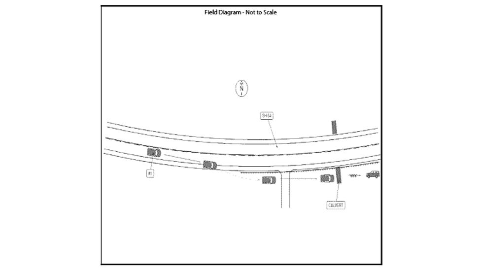 Un informe de TxDOT indica que Ayala conducía hacia el este por la SH-64 en un Nissan Rogue negro alrededor de las 7:45 p.m. con tres niños y un adulto como pasajeros. Su vehículo se salió de la carretera cerca de CR 421 y continuó a través del césped hasta que golpeó una alcantarilla y volcó, según el informe. Se detuvo en la hierba al sur de la calzada del lado del pasajero, mirando hacia el oeste.