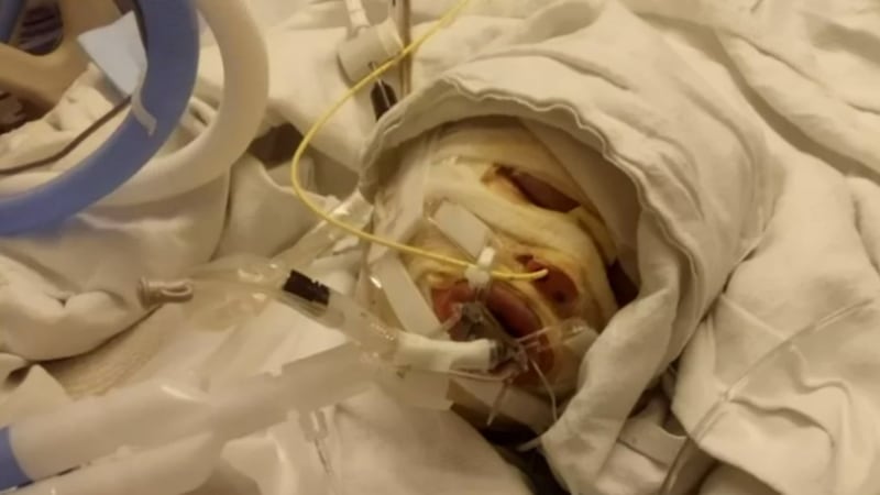 “Cuando volví a verlo, con tubos envueltos alrededor de todo su cuerpo, él no era mi Carson. Está muy hinchado ahora mismo. Le desenvolvieron la cara. Puedes ver su boca, su nariz y, en este momento, tienen los ojos cubiertos”, dijo Colvin.