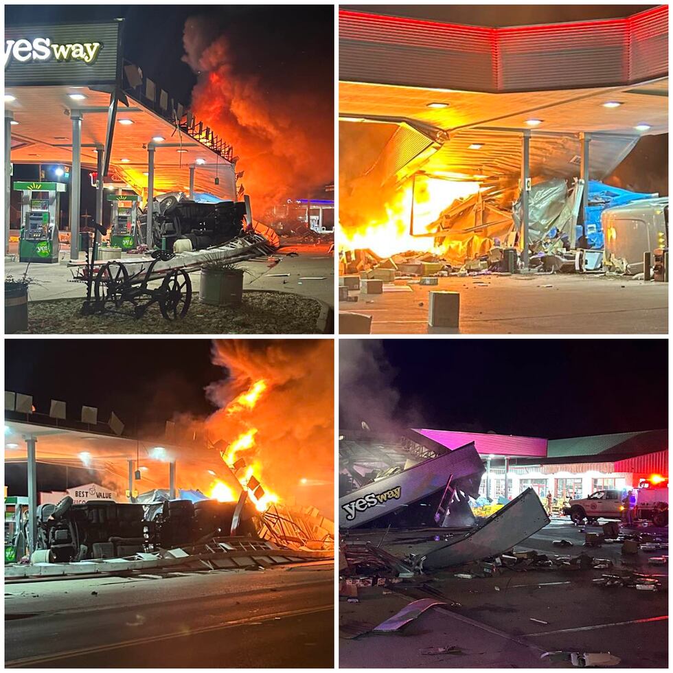 Conductor de un camión sobrevivió un choque y explosión en una gasolinera de Texas